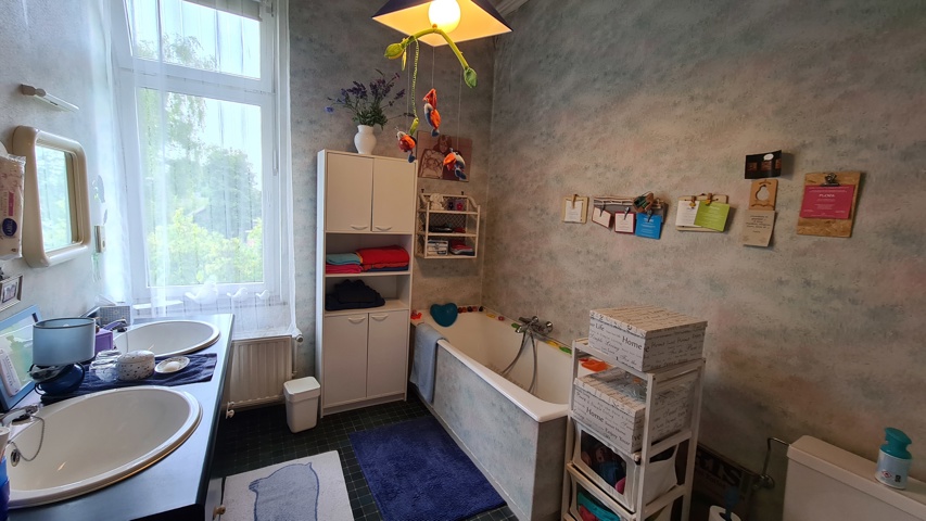 2 salles de bain, halls et paliers, toilette, séjour, cuisine, bureau ainsi que 3 caves, garage, grenier aménageable, combles et grand jardin de